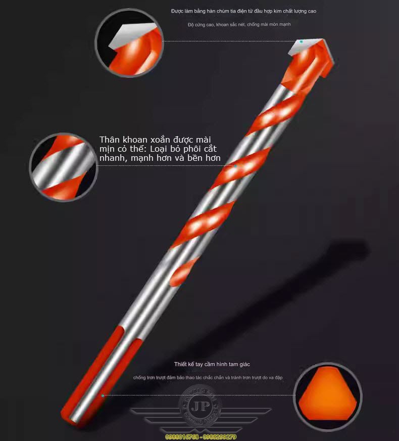 👍 Mũi khoan đa năng đầu 2 cạnh có rãnh thoát phoi👍 Thiết kế tỉ mỉ, sắc bén, đảm bảo độ chính xác cao👍 Mũi Khoan có chuôi tam giác giúp đầu kẹp khoan giữ chặt hơn.👍 Mũi khoan đa năng có thể sử dụng khoan trên nhiều chất liệu như: Kính, gạch men, đá các loại, tường nhà, nhựa, gỗ, sắt mỏng... (trừ sắt dày - quý khách cần khoan sắt vui lòng mua riêng mũi khoan sắt - KHÔNG sử dụng mũi đa năng cho khoan sắt)