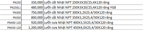 📍 Tham khảo các kích cỡ khác sẵn có của Lưỡi Cắt Nhôm Japan NPT: