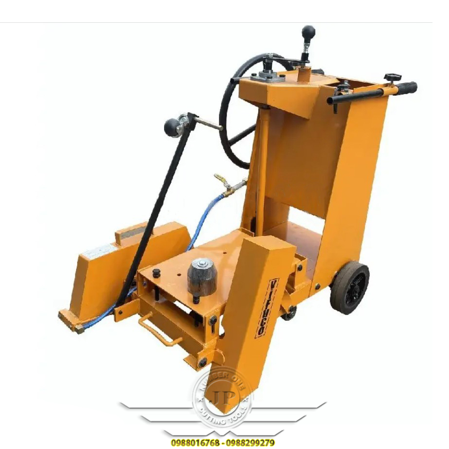 👉 Máy cắt có 4 bánh được làm bằng cao su đặc nên rất bám mặt đường và không tạo ra độ rung khi cắt bê tông.