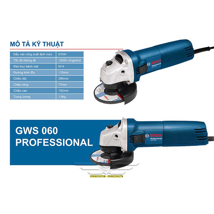 Thông số kỹ thuật máy mài BOSCH GWS 060 :