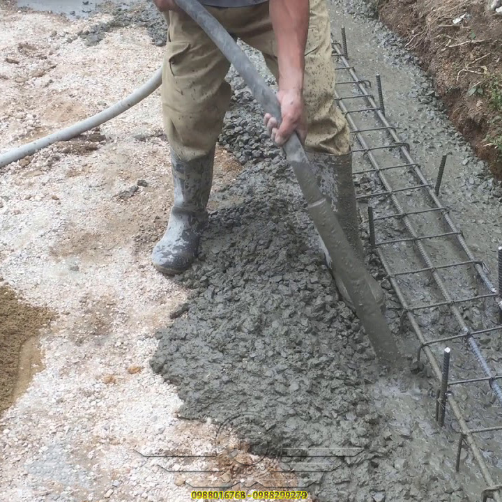 👉 Khi mới đổ bê tông xong sử dụng máy đầm dùi bê tông sẽ làm cho khối bê tông người ta thường sử dụng máy đầm dùi bê tông để làm cho khối bê tông trở lên chắc chắn hơn, làm cho không khí bên trong bê tông thoát ra ngoài tạo độ rắn chắc cho bê tông.